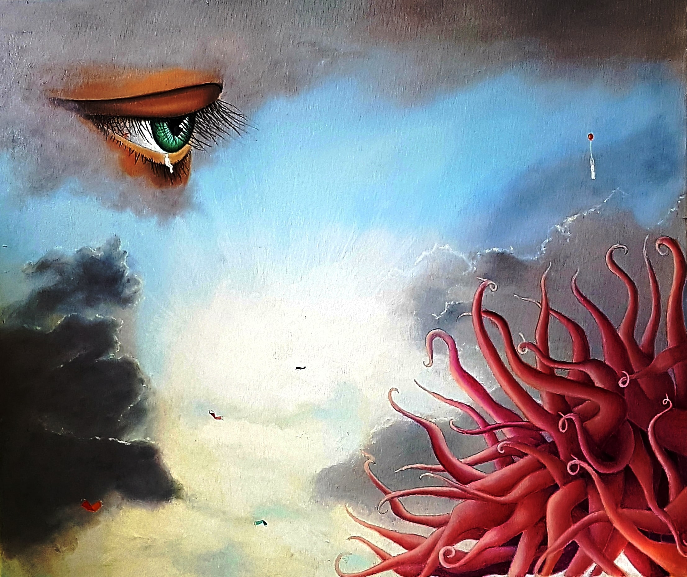 “Realtà onirica n°1″, 90×80 cm., tecnica mista